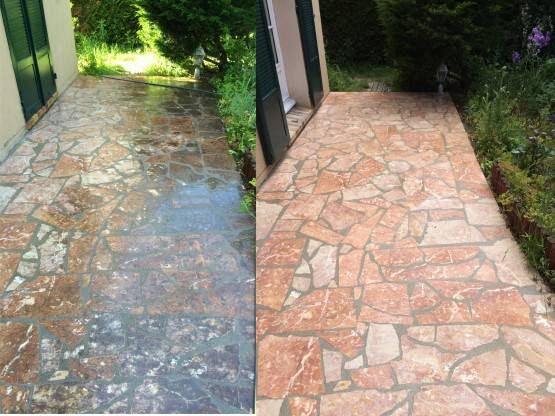Terrasses, dallages, pignons, murets, gouttières ou vérandas : avec le temps, les salissures s’accumulent. Nous réalisons un nettoyage en profondeur qui redonne propreté et éclat à vos extérieurs, tout en respectant les matériaux.